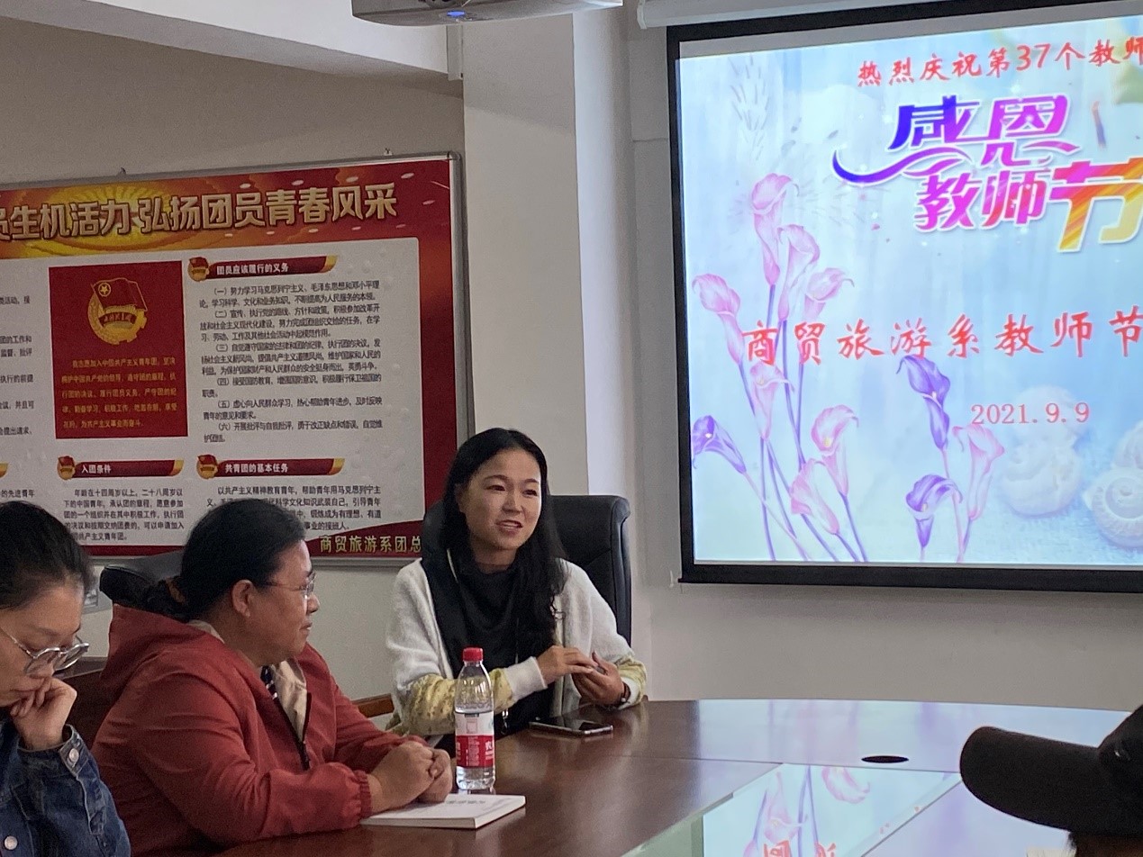 9月9日下午,在全国第37个教师节来临之际,商贸旅游系在六楼会议室召开全系教职工大会,系党总支书记陈瑞霞、系主任蒋晓东、系副主任陈志杰、春玲,及全系教职工参加了会议。