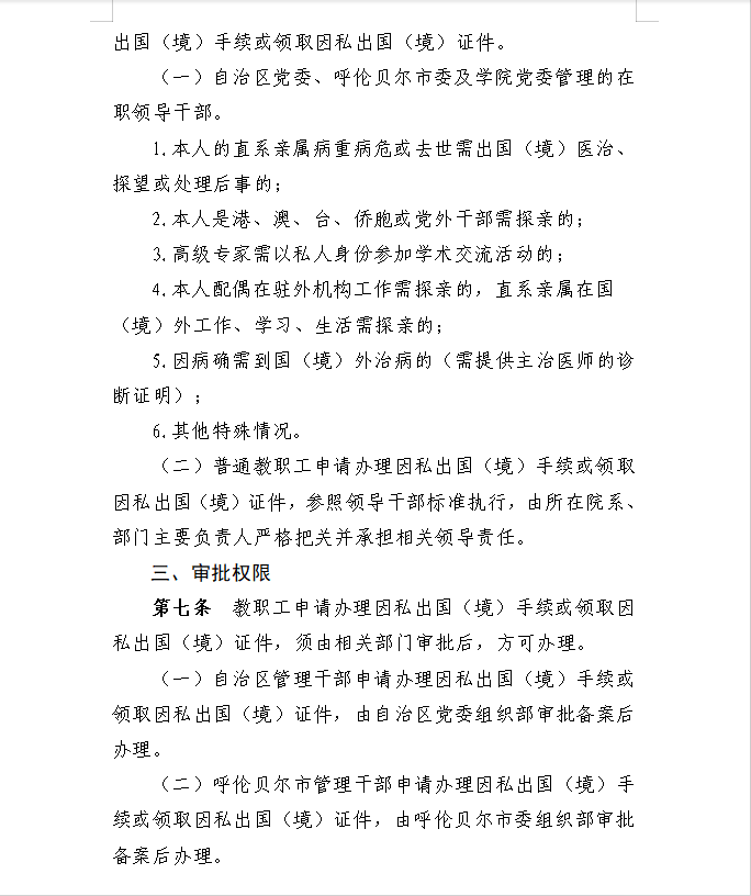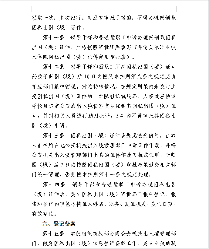 呼伦贝尔职业技术学院因私出国(境)审批管理实施细则