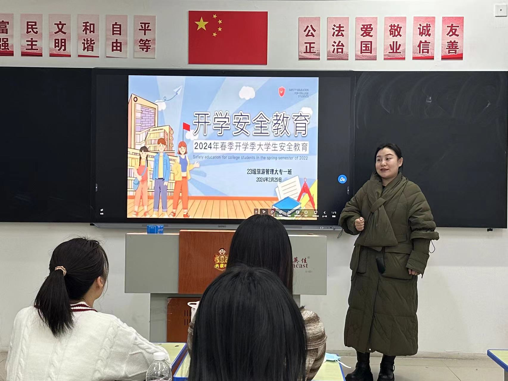 随着新学期的到来,商贸旅游系团学办迅速行动,于2月29日晚组织各班级召开了2024年春季学期的安全教育主题班会。此次班会的目的是进一步强化学院的安全教育管理工作,增强学生的安全意识,确保新学期的工作能够有条不紊地展开。