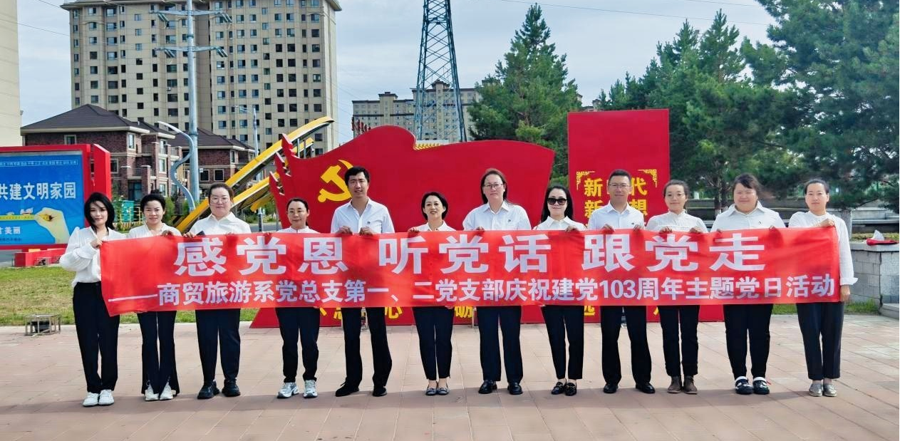 为庆祝中国共产党成立103周年,商贸旅游系党总支积极响应学院党委号召,精心策划,6月21日至6月30日,以“政治引领提升 先锋领航示范”为主题,采取线上线下同频共振的方式,组织开展了内容丰富、形式多样的庆祝活动。