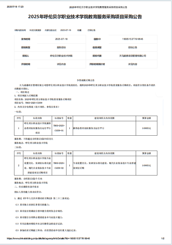 2025年呼伦贝尔职业技术学院教育服务采购项目采购公告