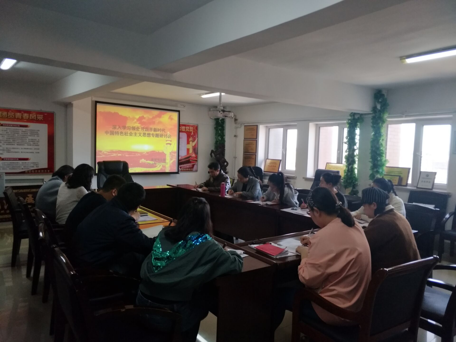 在学习大会上,党支部胡胜楠书记提出,习近平新时代中国特色社会主义思想创造性地回答了在新时代背景下坚持和发展中国特色社会主义的总目标、总任务、总体布局、战略布局和发展方向、发展方式、发展动力、战略步骤、外部条件、政治保证等基本问题,开辟了马克思主义新境界,开辟了中国特色社会主义新境界,开辟了治国理政新境界,开辟了管党治党新境界,作出了重要的历史贡献。由“八个明确”的基本内容和“十四个坚持”的基本方略所构成科学理论,指引党和国家的伟大事业走向更加辉煌的胜利,也是我们党员教师思想和工作取得新高度的指南针。