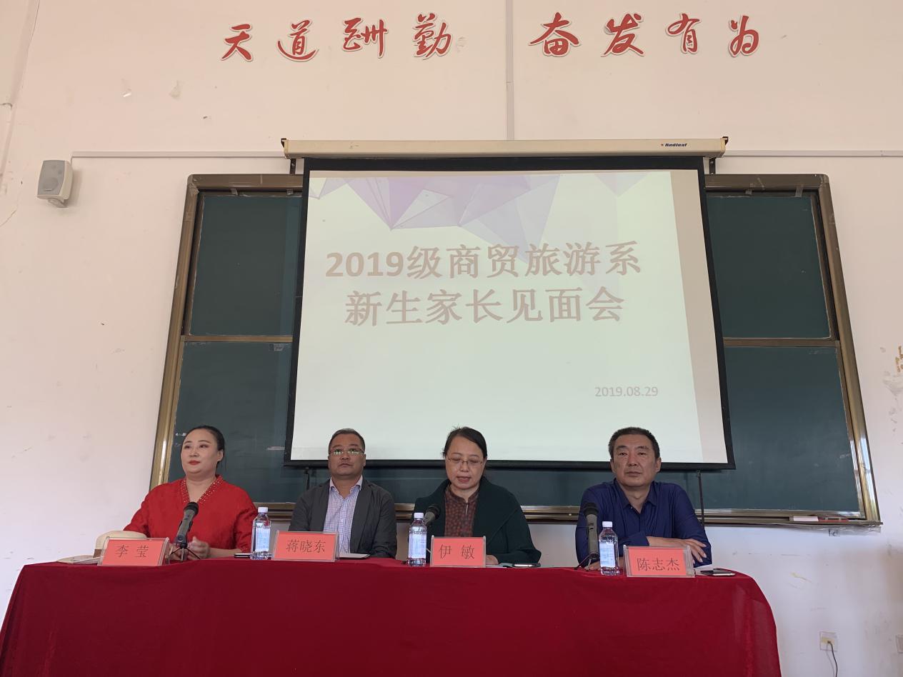为进一步加强系部与学生家长的交流和沟通,赢得家长的理解、支持与配合,充分发挥系部教育与家庭教育的合力,2019年8月29日,商贸旅游系在系楼101举办了新生家长见面会。出席本次见面会的领导有商贸旅游系党总支书记、系主任伊敏,系副主任蒋晓东、陈志杰,商贸旅游系学工办副主任李莹。